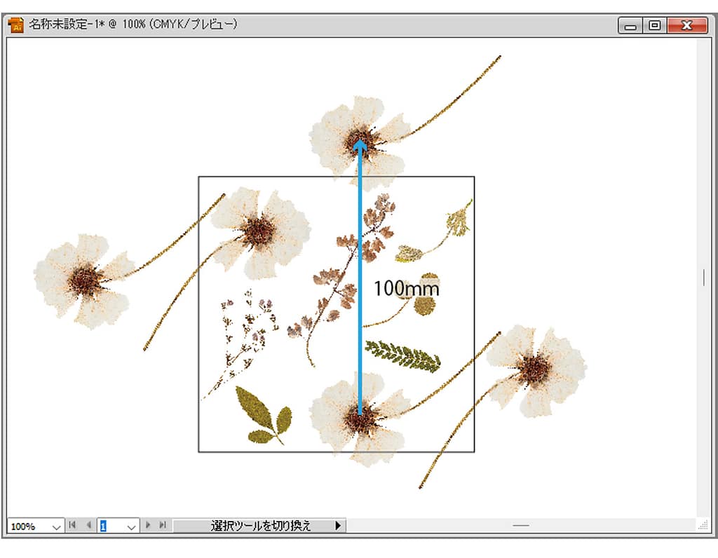 (例)100×100(単位はmmでもpxでもOK)にて設定