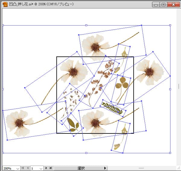 ⑤配置した画像を「グループ化」し正方形を「最前面に」配置して「クリッピングマスクを作成」