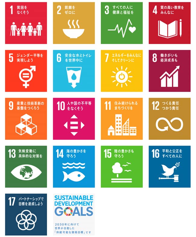 SDGs=全世界のすべての人が幸せになるために、より良い環境を目指す17の国際目標