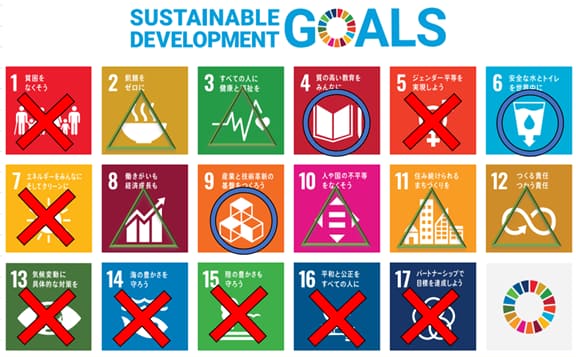 このように上記のいずれかの労働環境に問題があれば、SDGsに掲げる下記の目標の達成はできません。