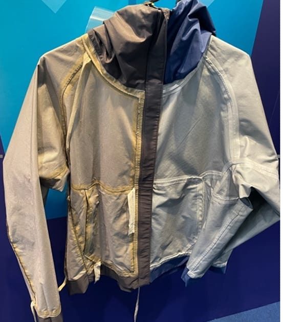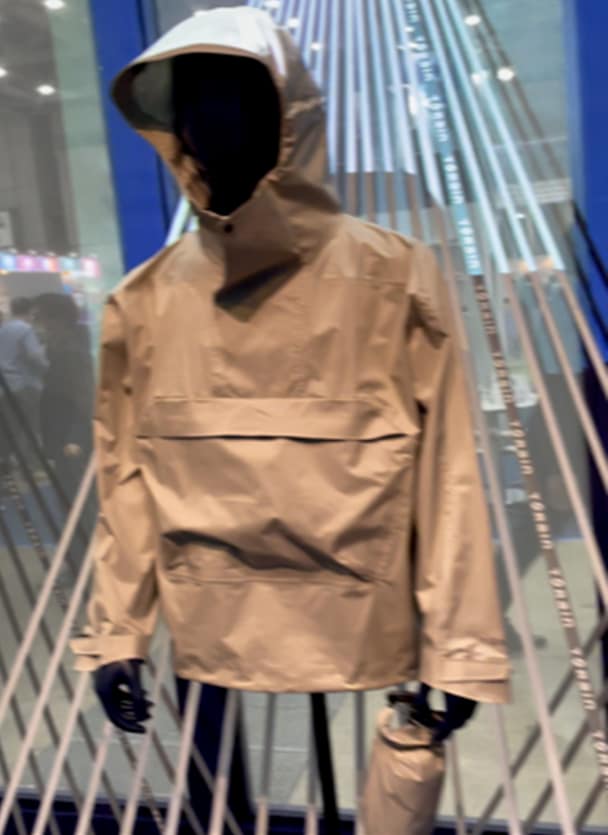 今回の展示会では、東レインターナショナルが展示していた「TORAIN」が例になります。今回展示会では、長く着るだけでなく、基布や副資材のリサイクルやバイオ由来化など、さらにエコを目指して、メーカー商社として、SDGsや環境配慮の活動への取り組みを表明していました。