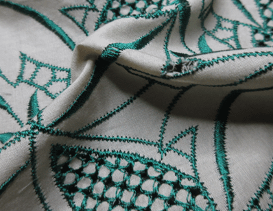 刺繍糸を細番手にすると繊細な刺繍模様に仕上がり、太番手で作ると立体感のあるレースに仕上がります。