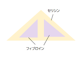 ちなみにほとんどのシルクは光沢感がありますが、精練工程でフィブロインを覆うセリシンを取り除くことで光沢が生まれます。セリシンを取り除き、三角の形状をした断層のおかげで、プリズム効果が発揮され、光を乱反射することで光沢を強く感じることができます。