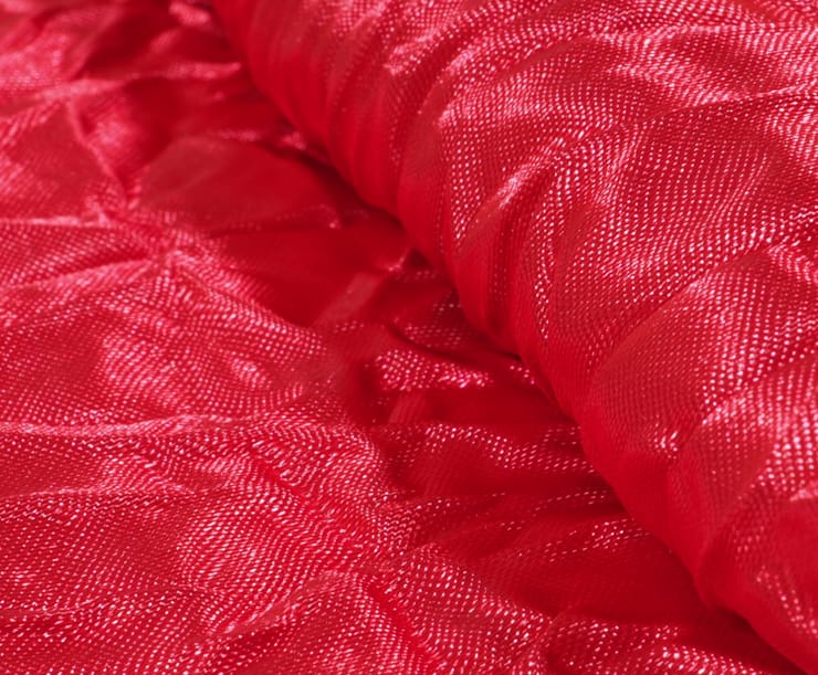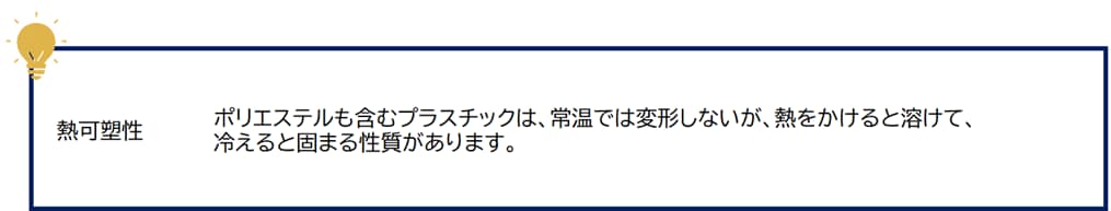 しっかりとシワ感を形状記憶させたい場合によく使用される生地は、ポリエステル素材が多くなります。ポリエステルは耐熱温度が高く、熱をしっかりかけることで、セット性が高くなります。熱可塑性という性質を利用して、シワに形状記憶させることで、洗濯しても他の繊維よりもシワが落ちにくい特徴があります。