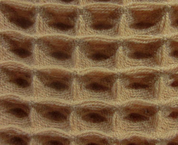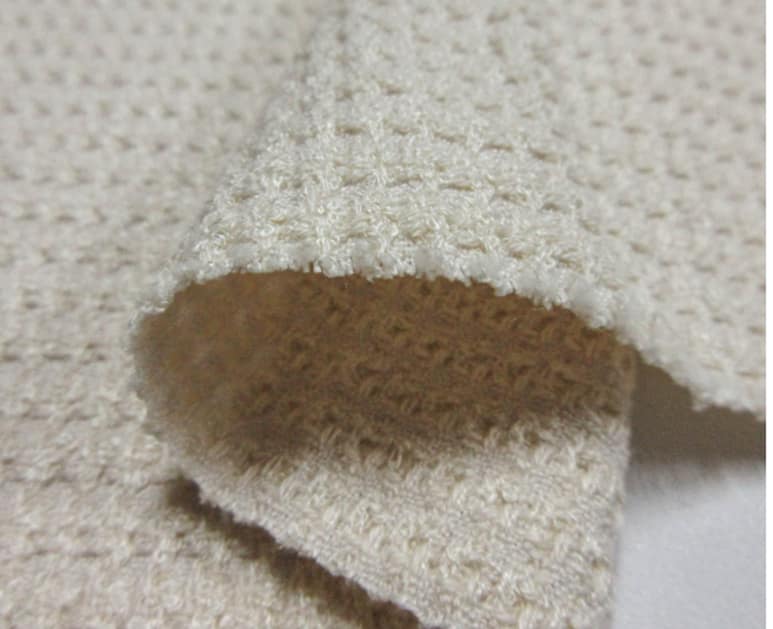 ワッフル生地とは、その見た目がまさにお菓子のワッフルに似ていることから名づけられた生地です。経糸と緯糸を浮かすことで、このような凹凸感のある生地に仕上がります。