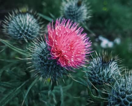 起毛機が誕生するまでは、「あざみ」などの植物を使用していました。あざみは、葉や総苞(つぼみを基部で包む小さいうろこ状の包の集まり)に鋭いトゲがあり、そのトゲを利用して、繊維を引っ掻くことで、起毛を行っていました。