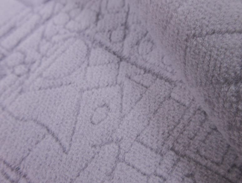 組織を工夫しなくても、プリントのような模様を作り出せます。ジャガード組織よりも自由度は高く、スクリーンプリントやデジタルプリントのよりも立体感があるので、ジャガード織物とプリントのいいところ取りをしたような仕上がりです。通常のプリントに飽きた方には、おすすめの加工法です。
