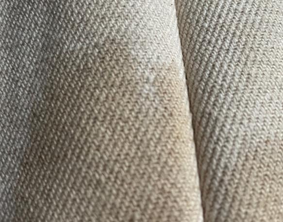 コットンや麻などの天然繊維は、黄変と呼ばれる黄ばみになりやすい素材です。特にキナリや淡色などは黄ばみが目立ちます。生地に付着した汚れやホコリの蓄積が酸化することで、黄変が進行します。そのため、表面を清潔に保つことや、酸化の進行を早める高温多湿の場所には保管しないなどの対策が必要です。