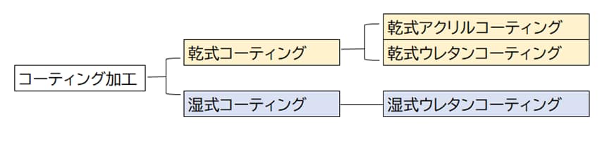 乾式コーティングの代表としては、「乾式アクリルコーティング」と「乾式ウレタンコーティング」があります。