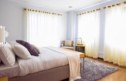 カーテンやカーペットなどの素材にも、難燃性の生地が使用されます。防炎生地(後加工)が使われることもあり、高層マンションや百貨店やホテルなどの不特定多数の人が出入りする施設には、消防法により、防火性のあるカーテンを使用することが義務付けられています。