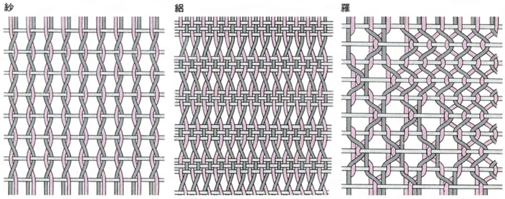 絡み織には、代表組織と言われる「紗(しゃ)」・「絽(ろ)」・「羅(ら)」があります。それぞれどのような組織なのでしょうか?