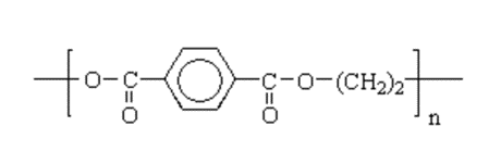 一般的に多くの衣料品で使用されている「PET(ポリエチレンテレフタレート)」の化学式は下記の通りです。