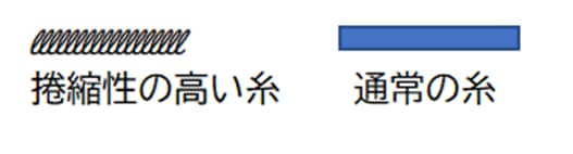 繊維がバネのような形をしていることから、捲縮性(クリンプ)が高く、クッションのような反発性のある生地に仕上がります。
