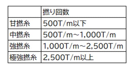 - 撚りの回数が500T/m~1,000T/mの撚糸