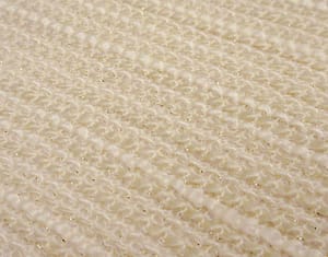 日本テキスタイルは、カラミ織りの設備を持つ工場です。カラミ織りとは通常の織物と違い経糸を捻じって交差させながら一本一本織り上げていくため、緯糸がほつれにくく、経糸がしっかり緯糸に捻じられているため、生地に力がかかっても耐えることが出来ます。この技術をもつ同社だから、できたユニークな製品開発になっています。