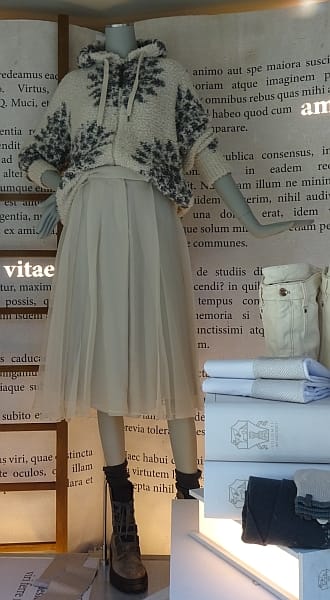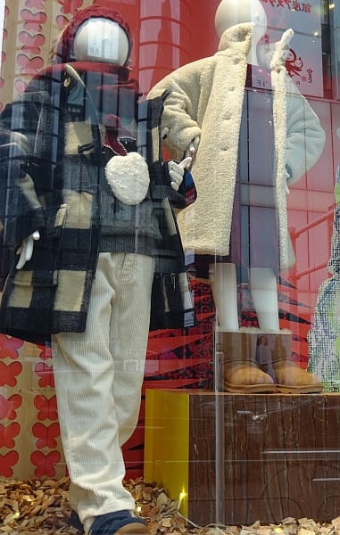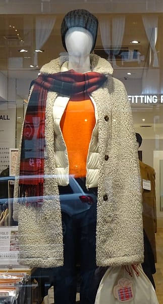 コートの概況は前回にお伝えしましたが、今シーズンの特徴はクラシック志向の影響でベーシックなウールのコートが見直され、厳しい寒さの折はダウンが圧倒的に強みを発揮すると同時に陽射しがある時やそれほど低い気温ではない日によく見られたのがボアやフリースのブルゾンやジャケットです。秋からニットやカーディガン感覚で若い人たちを中心に着られましたが、あっという間に50代60代にまで浸透しました。これにはユニクロが提唱したフリースジャケットやパーカー(4990円)の影響があるかもしれません。男性や子供達からも支持され街でよく見かけるようになりました。