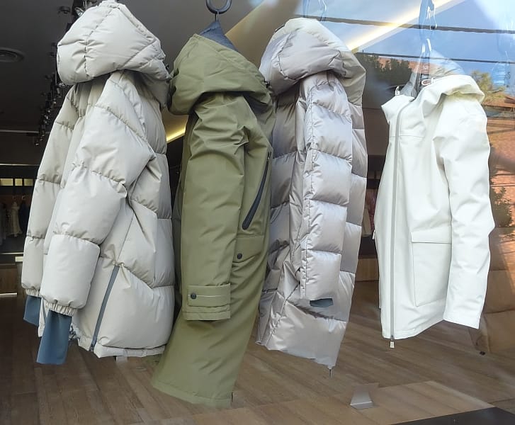 秋から冬への店頭は鈍いといわれながらも寒さを感じるにつれて防寒アウターが動き、ダウンなどの非ウールとウールのコート類が比較的好調です。昨年に比べて少しブレーキが緩んだ気がしますが、今シーズンはややスリムなシルエット、七分丈からショート丈(60~80cm)が中心で、軽く肌触りの良い素材が好まれています。