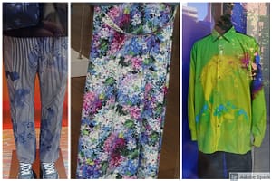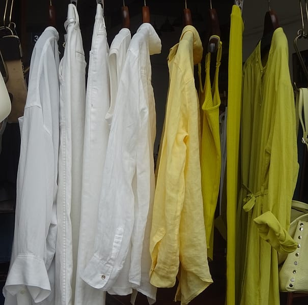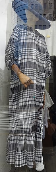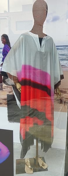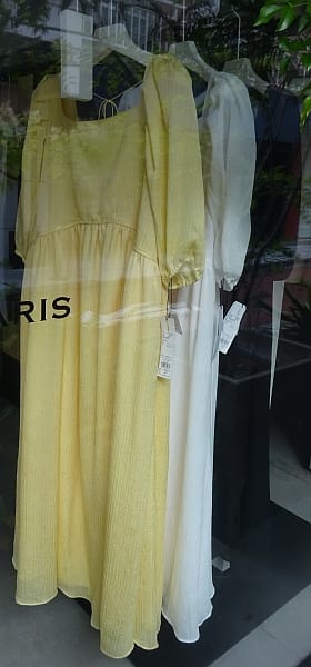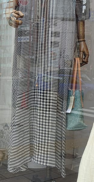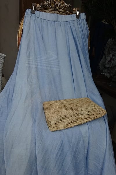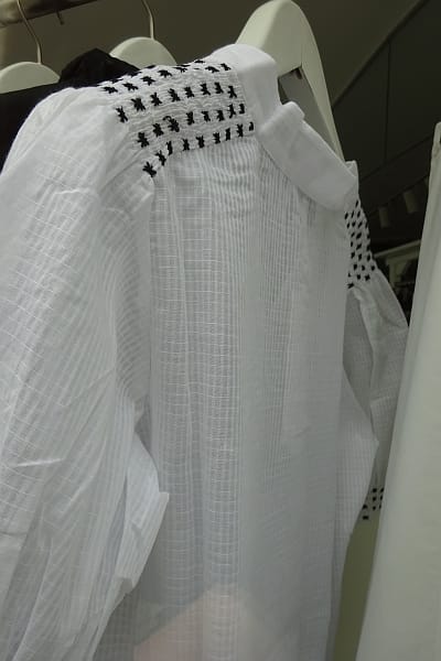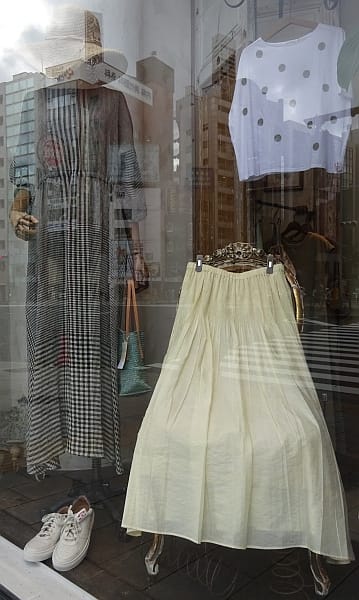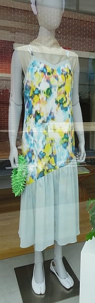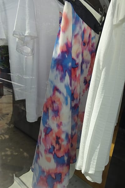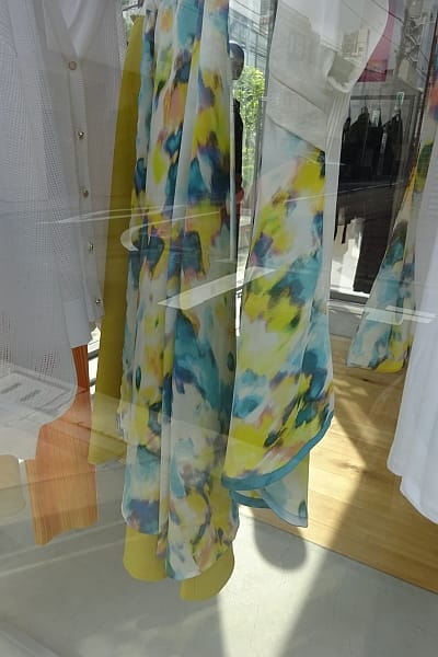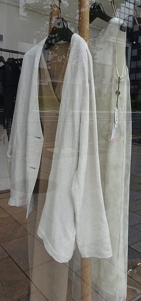 この夏の店頭は例年に比べ躍動感や祭りの気分、華やかなリゾート感覚よりも日々の生活に根付いた心地よいナチュラルなもの、手の届く大胆さなどが主流でした。優雅なブラウス、たっぷりの分量感がありながらストンと落ちるロングシルエット、シンプルだけどポイントを押さえたワンピースなどなど。メッシュやオーガンジなど透ける素材を重ねたダブルクロス、柄の繋ぎ合わせなどの他に、ぼかしたり滲んだりした柄やガーゼなどの緩い平織素材が目立ちました。いずれもナチュラル感があり柔らかいけれど型崩れしないシルエットが保たれ、先染めやプリントで華やかさが感じられ一日着ていても飽きないなどの親しみやすさがあります。綿や麻中心でブラウスや羽織もの、ワンピースに多く見られました。